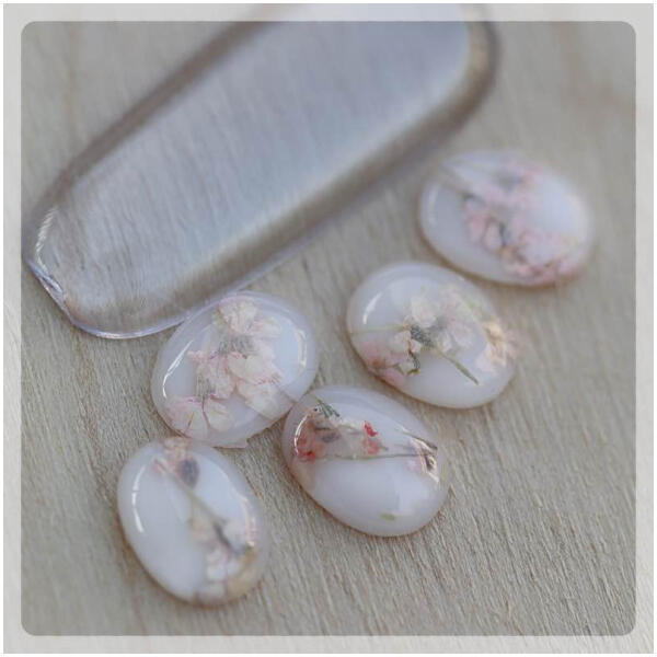 Zodiac körömdekoráció ovális műanyag forma belsejében színes szárított virágokkal. Különleges körömdíszítő, minden darabja egyedi.