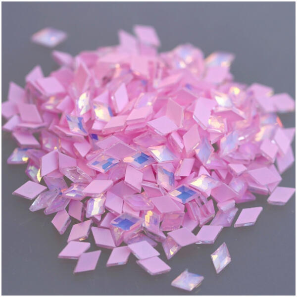 Strassz formakő körömdísz, mini light rose opál rombusz. Különleges színvilágával izgalmas jelenség, pici formája minden körmön jól mutat. Flatback no hotfix.