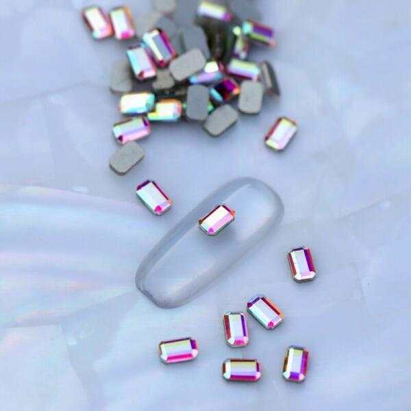 Strassz formakő pici hasáb formában színjátszó színben. Flatback no hotfix típusú körömdísz mely nagyszerűen kombinálható megújult színjátszó rétegű, intenzívebb csillogású strasszköveinkkel, változatos színvilágú üveg formáinkkal, egyedi körömékszereinkkel.
