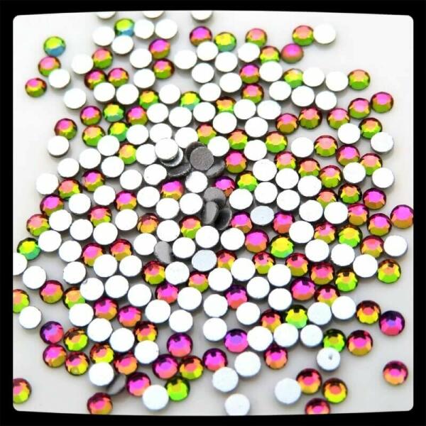Zodiac strasszkő ss5 Rainbow a sokszínű csillogás. Szivárványos, zöldes-lilás színvarázs, a hétköznapok hangulatjavítója. Ragasztható, lapos aljú, fóliázott strassz, könnyen használható bármilyen kreatív díszítéshez. Átmérő: 1.70 - 1.90mm (ss5) . 12 oldalra csiszolt, flatback, no hotfix. Hogyan díszítsünk strasszkövekkel? A nagyobb méretű, lapos talp