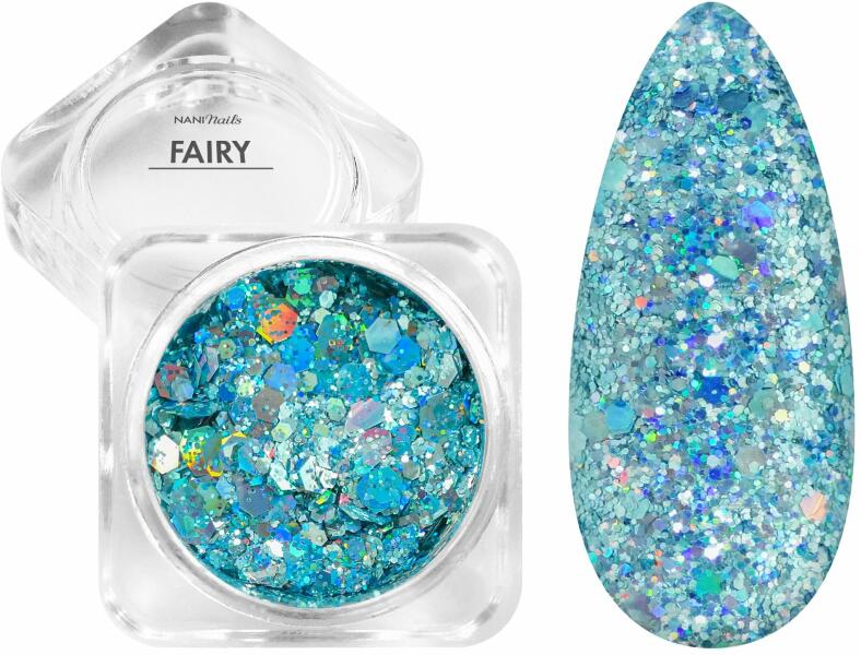 Látványos manikűr a Fairy körömdísznek köszönhetően. A csillámok gyönyörű kromatikus színárnyalatai csodálatosan feldobják a manikűrödet. Különböző méretű és színű csillámok egyetlen tégelyben a tökéletes wow hatáshoz. Használd a csillámokat a körmök teljes felületén vagy csillogó francia manikűrhöz – semmi sem szab határt az inspirációnak! zselés, p