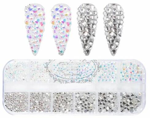 Körömstrassz box 12 rekeszesSzín: ezüst - fehérSS3-SS10