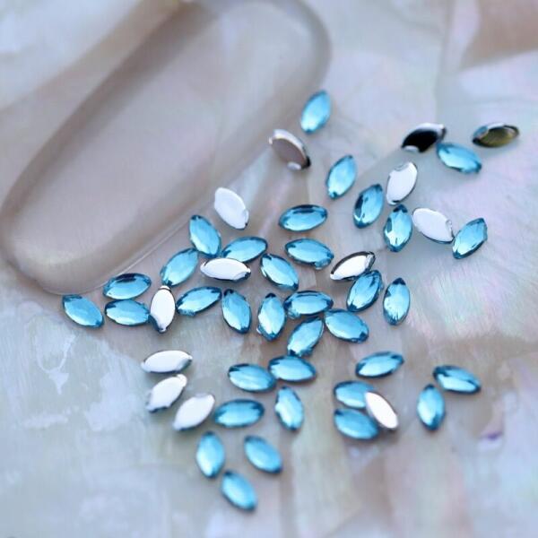 Akril forma zabszem alakban Aquamarine kék színben. 3mm-es méret. Kevésbé szabályosan vágott, mint üvegből készült formáink, viszont ár-érték arány kedvezőbb.