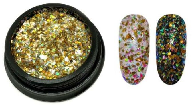 Csillogó és elbűvölő! Mintha csillagok táncolnának a körmeiden. Használata egyszerű, teheted műkörömre, vagy akár a saját körmödre is. A szabálytalan kis glittereket a géllakkod, körömlakkod, építőzseléd tetejére is rászórhatod. A tartós eredmény érdekében mindenképp használj fedésképen egy réteg fényzselét!