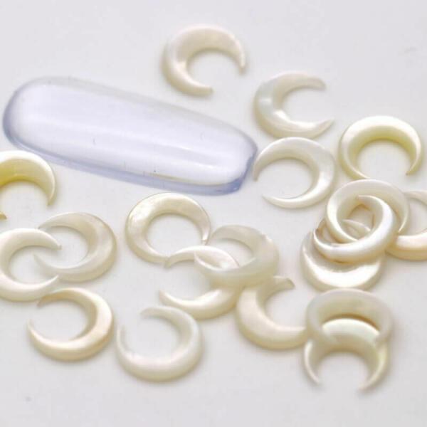 Kagyló körömdísz félhold formában. Egyedi, különleges körömdíszítő.