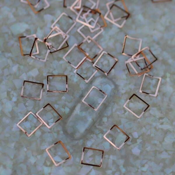 Szegecs körömdísz divatos Rose Gold színben. Vékony alumínium szegély hasáb formában. Kiválóan kombinálható Rose Gold színű strasszköveinkkel, szórógyöngyeinkkel.