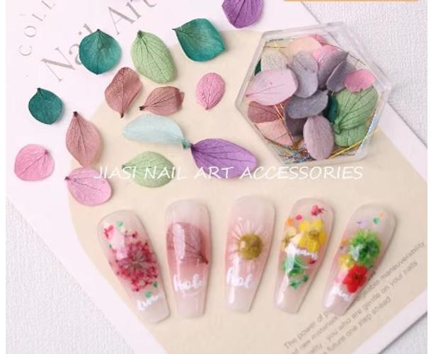 Szárított körömdíszítő virágok tégelyben. Kiváló kellék műkörömépítéshez, körömdíszítéshez. A tégely átmérője 4 cm. Vegyesen tartalmaz többféle színű szárított virágot.