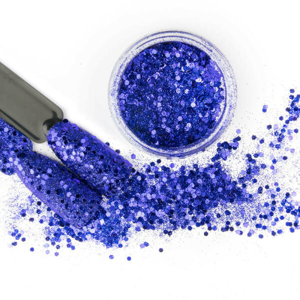 Mini pixie üvegdarabok. Csúcsos, metálkék aljú pixie körömdísz, körömfelületre szórva fényes csillogó hatás érhető el vele. 0.5gr. /cs.