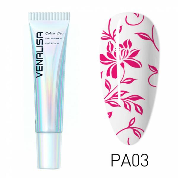 Egy magas pigmenttartalmú festőzselé, amellyel rendkívűl hatékony a munkavégzés, valamint kiváló eredményeket érhetünk el használatával. Rendkívül precíz munkavégzést tesz lehetővé számunkra mivel nagyon vékony vonalakat is tudunk vele húzni, amely a magas pigmenttartalmának köszönhető. Kötési ideje: UV lámpában 3-4 perc, LED lámpában 2perc. Kiszerelés: 15gr.