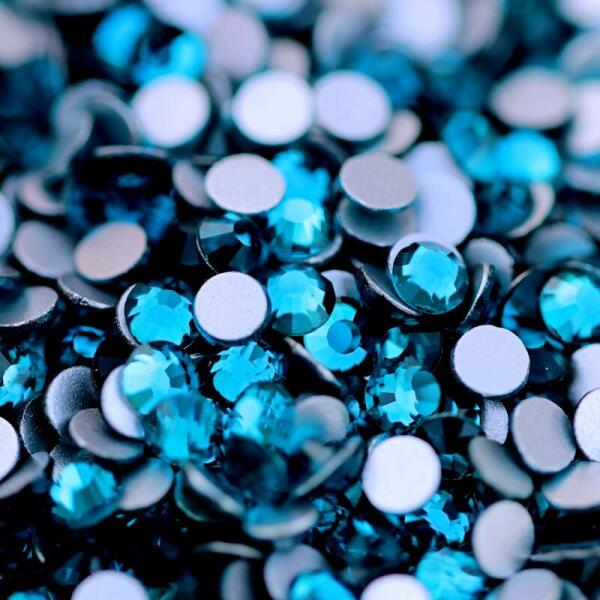 Zodiac strasszkő ss12 Zircon Blue, élénk, erős színtónusú zöldeskék, intenzív csillogással. A legszebb színű Zircon Blue, mint drágakő Kambodzsában található, de mielőtt utazást terveznél, teszteld le színét strasszköveinkkel körmeiden! Ragasztható üveg strasszkő dekorációs díszítésekhez. Átmérő: 3.00 - 3.20mm (ss12) . Flatback, no hotfix, 12 oldalra