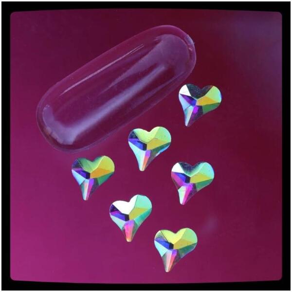 Strassz formakő Crystal AB színjátszó színben. Népszerű, flatback ragasztható szív alakú üvegforma körömdísz. Glue gél segítségével tartósan a körmön marad, kíválóan kombinálható egyedi strassz formáinkkal, különleges körömékszereinkkel, szórógyöngyeinkkel.