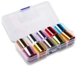 Különleges, egyszínű fém hatású körömdíszítő fólia készlet, 10 db különböző színnel.