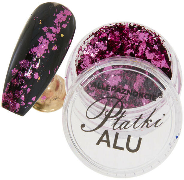 Az Alu pehely Nr. 4, másnéven füstfólia pehely, csillogó alumínium hatást kelt a kezeden. A nagyon jó színtelítettség néhány pillanat alatt egyedi hatást biztosít. Nem kell többé alapszínt használni alatta, persze csak ha nem akarod!Szeress bele mesés színeikbe, és válaszd ki álmaid egyikét. Csodálatos Alu pehely körömdíszítéshez 7 egyedi színben. A körmök fémes
