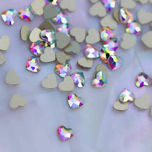 Strassz formakő körömdísz színjátszó pici szív formában. Intenzív csillogásának és apró méretének köszönhetően nagyszerű díszítőelem. Flatback no hotfix típusú, fóliázott aljú. Kreatívan kombinálható megújult színjátszó rétegű strasszköveinkkel.