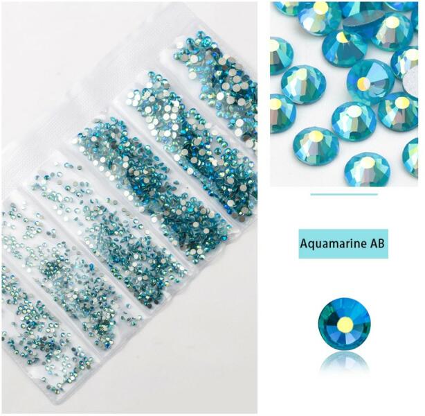 Különleges strassz kristály válogatás, ezüst alappal, amely normál nem ragasztós felületű. 1680 darabos kristály strassz készlet 6 féle méretben P33 - Aqumarine AB használata: A köröm felületét a szokásos módon készítsük elő, majd alapozzuk le egy réteg alap gél lakkal. Köttetés után fessük a megfelelő színűre, ez lesz az alap. A szín köttetését követően, sp