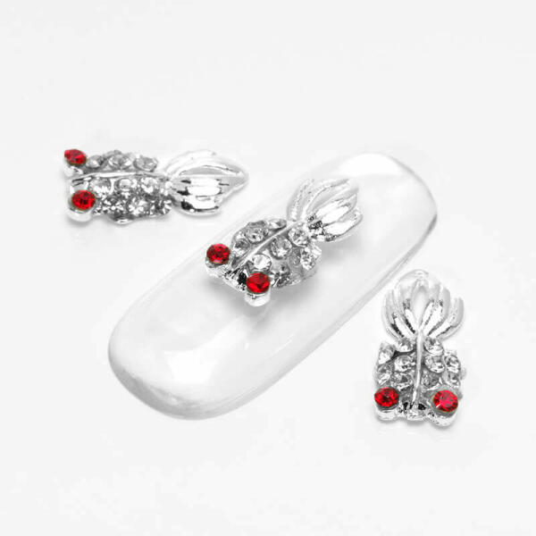 Strasszköves körömdísz, 11*5mm-es rák piros strasszkő szemekkel díszítve.