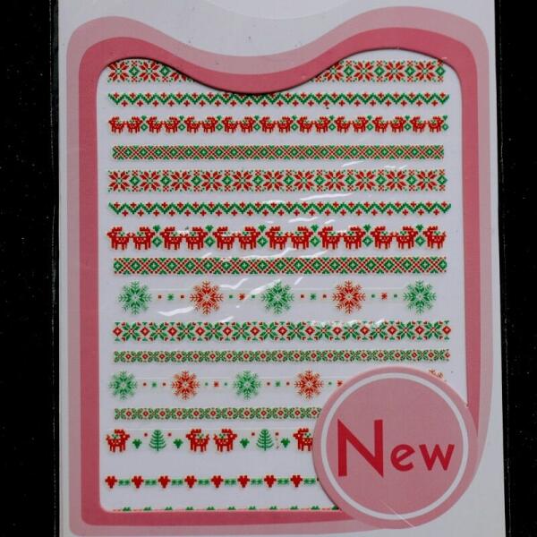 Karácsonyi körömmatrica 3D, piros-zöld karácsonyi sorminták a gyors és egyszerű díszítésért.