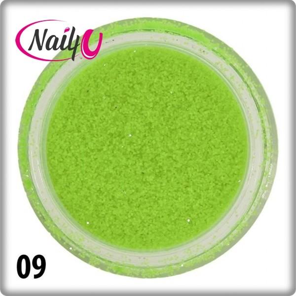 Csillámpor 09. , neon zöld színben. A körömdíszek között a leginkább népszerű körömdíszítő anyag. Töretlen népszerűsége a kedvező ár mellett, a széleskörű felhasználhatóságnak is köszönhető. Használhatjuk szinte bármilyen körmön. Tehetjük felületre, beépíthetjük, vagy akár az építő anyaghoz is keverhetjük. A végeredmény; káprázatos csillogás, egysz