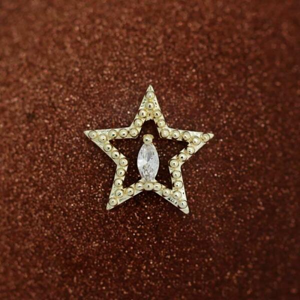 Cirkóniaköves körömékszer arany színű csillag, közepén szikrázó cirkóniakővel. Fedezd fel Te is prémium minőségű körömdíszítő ékszereinket! Nagyszerűen kombinálható változatos színvilágú és megújult csillogású strasszköveinkkel.
