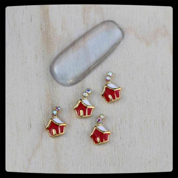 Karácsonyi körömdíszeink tökéletes hangulatteremtők, egyszerűen felhelyezhetők, glue géllel rögzíthetők. 8*6mm-es piros színű házikó körömdísz strasszköves füsttel. 6db/cs.