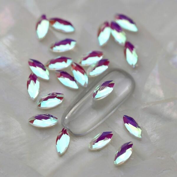 Strassz formakő körömdísz Ice, zabszem formában, különleges jeges színeffekttel. Flatback, no hotfix típusú üvegforma. Glue gél segítségével tartósan a körömre ragasztható, strasszkövekkel, szórógyöngyeinkkel kombinálva különleges dekorációkat alkothatunk.