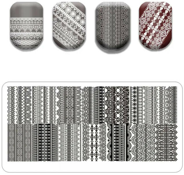 Kitűnő minőségű acél nyomdalemez. A finom, de precíz vonalakban pont annyi nyomdafesték ül meg, hogy könnyen fel lehessen vinni a körömre. A körömnyomdalemez használata Acetonnal tisztítsuk le a nyomda felületét, nem maradjanak rajta festék és olajszennyeződések pár csepp krémes nyomdafestéket oszlassunk el a mintán a spatula segítségével távolítsuk el a felesleges f