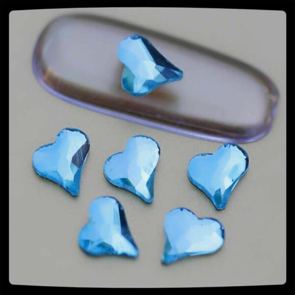 Strassz formakő Aquamarine színben. Népszerű, flatback ragasztható szív alakú üvegforma körömdísz. Glue gél segítségével tartósan a körmön marad, kíválóan kombinálható egyedi strassz formáinkkal, különleges körömékszereinkkel, szórógyöngyeinkkel.
