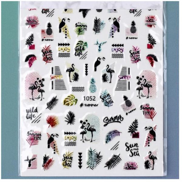 Körömmatrica Summer 3D-s kivitelben, nyári formák színes színjátszó színekben. Matt, bufizott, portalanított felületre helyezve, 2 réteg fedővel, egyszerűen használható körömdíszítő, önmagában is kitűnő dekoráció.