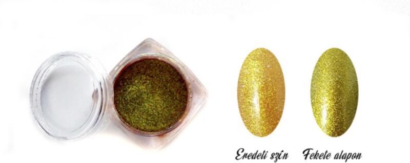 Chameleon Powder 338002 -a különleges pigment bázisnak köszönhetően káprázatos hatást érhetsz el. Chameleon poraink segítségével végtelen sok effekt variációt hozhatsz létre, ha alapozáshoz bármely Classic Nails gél lakk, vagy színes zselé árnyalatot használod, hiszen minden színen máshogy mutatnak. Elérhetsz vele króm finisht, ha fixmentes termékbe dörzsölöd. Csill