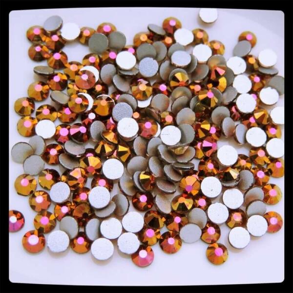Zodiac strasszkő ss12 Copper, r agasztható üveg strasszkő dekorációs díszítésekhez. Átmérő: 3.00 - 3.20mm (ss12). Fémes, metálos felületén a réz színe csillog pinkes átfedéssel, igazán különleges színélményt létrehozva. Világosabb, mint a hozzá hasonló Metallic Rainbow. 12 oldalra csiszolt üveg strasszkő, lapos aljú, fóliázott, minden dekorációs felületre kön