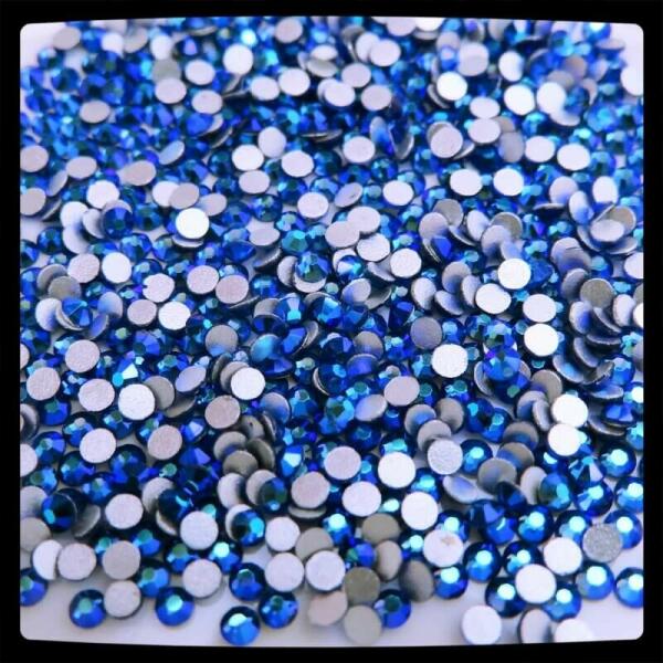 Zodiac strasszkő ss4 Sapphire AB, zafírkék, ragasztható strassz színjátszó réteggel. Az ásványvilágban megfelelője a korund, ami vegyileg tiszta állapotában egy áttetsző ásvány, de szennyeződések hatására elszíneződhet: vörös színű változata a rubin, kék változata a zafír, narancssárga változata pedig a padparadsa . Színének a szervezetre kifejtett hatásai: els