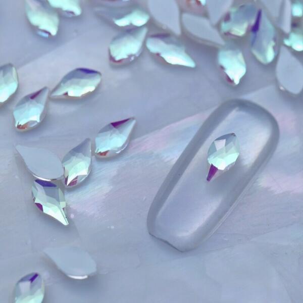 Strassz formakő Ice körömdísz Flame formában, különleges jeges színeffekttel. Flatback, no hotfix típusú üvegforma. Glue gél segítségével tartósan a körömre ragasztható, strasszköveinkkel, szórógyöngyeinkkel különleges kombinációkat alkothatunk.