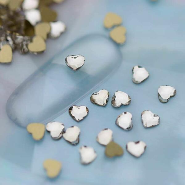 Strassz formakő crystal színű pici szív formában. Intenzív csillogásának és apró méretének köszönhetően nagyszerű díszítőelem. Flatback no hotfix típusú, fóliázott aljú. Kreatívan kombinálható megújult színjátszó rétegű strasszköveinkkel.