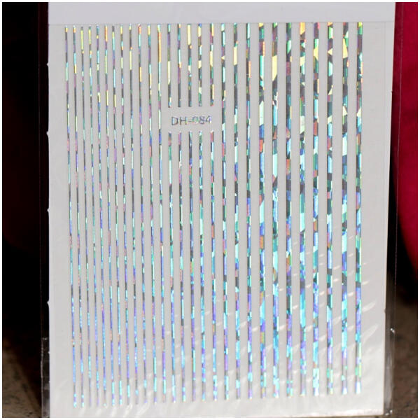 Körömmatrica Silver AB, ezüst színjátszó színben, ragasztható, különböző vastagságú díszítő csíkok. Egyszerűen használható körömdíszítő mely kiválóan kombinálható színes strasszköveinkkel, különleges kiegészítőinkkel. .
