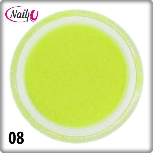 Csillámpor 08. , neon sárga színben. A körömdíszek között a leginkább népszerű körömdíszítő anyag. Töretlen népszerűsége a kedvező ár mellett, a széleskörű felhasználhatóságnak is köszönhető. Használhatjuk szinte bármilyen körmön. Tehetjük felületre, beépíthetjük, vagy akár az építő anyaghoz is keverhetjük. A végeredmény; káprázatos csillogás, egys