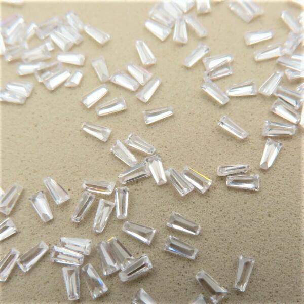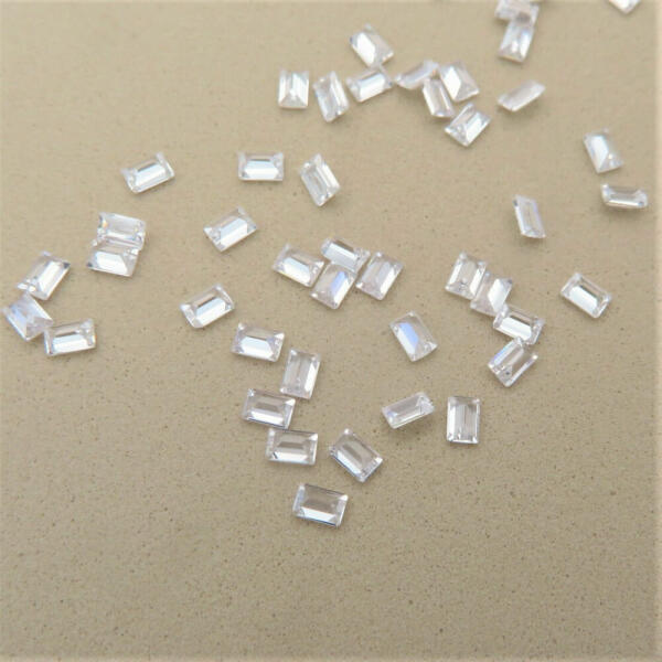 Cirkónia ékszerkő szögletes formában 1*1.5*3mm-es cirkónia kristály. Crystal színben. 25 db.