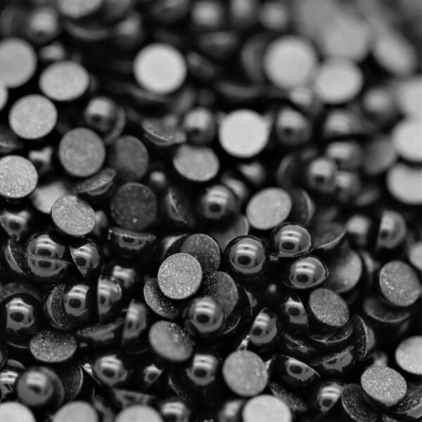 Félgyöngy körömdísz, fényes fekete színben, szépen vágott, népszerű körömdekoráció. 2mm átmérőjű. Kíválóan kombinálható színes, színjátszó réteggel kezelt társaival. 100db/cs.