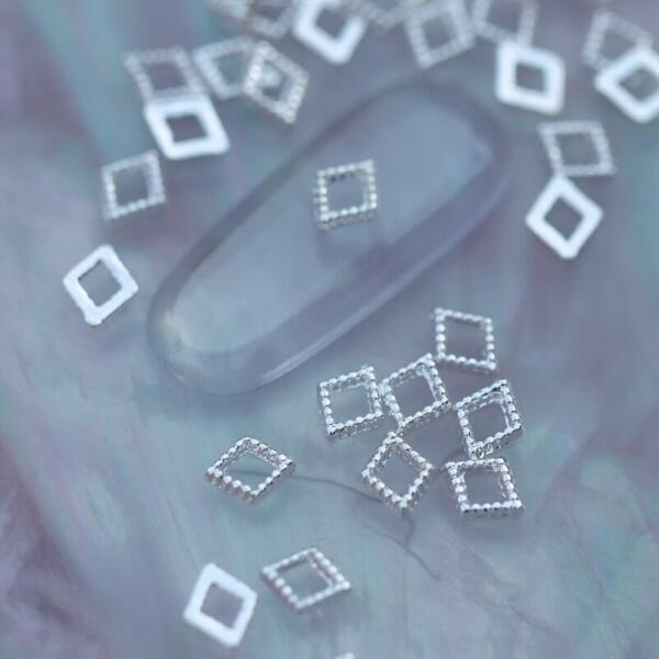 Szegecs körömdísz, ezüst színű pöttyözött rombusz körömdekoráció.