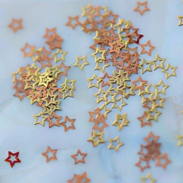 Metál körömdíszítő lemez, arany színű, könnyen hajlítható, csillag formában. Kis méretének köszönhetően variálható egyedi díszítéseinknél, gél lakkba is használható, beépíthető. Karácsonyi mintához is nagyszerű díszítőelem.