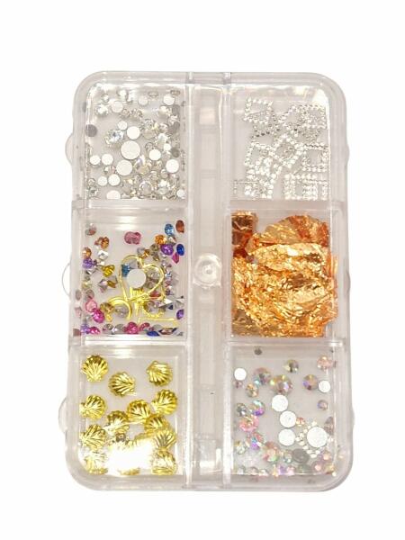 Köröm díszek csomagban. A dobozban különböző díszek vannak különböző arányban. A tartalma kissé eltérhet!