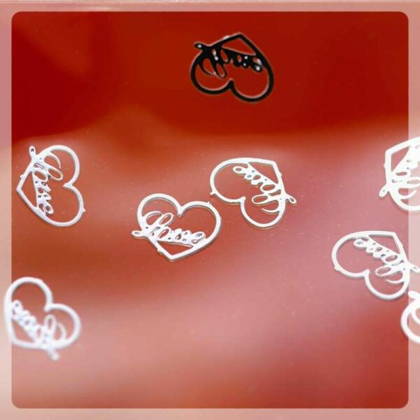 Metál körömdíszítő lemez vékony, fényes ezüst szív forma, love felirattal. Könnyen a körömfelületre helyezhető, önmagában is kitűnő díszítő. Minden érzelmi szituációban rendíthetetlen, ami a körmeinken, az van a szívünkben!