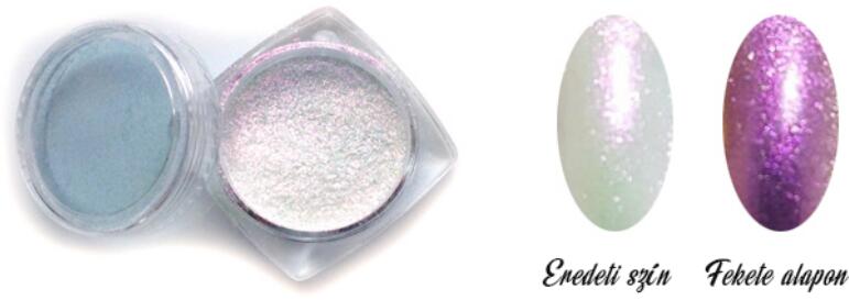Chameleon Powder 338004 -a különleges pigment bázisnak köszönhetően káprázatos hatást érhetsz el. Chameleon poraink segítségével végtelen sok effekt variációt hozhatsz létre, ha alapozáshoz bármely Classic Nails gél lakk, vagy színes zselé árnyalatot használod, hiszen minden színen máshogy mutatnak. Elérhetsz vele króm finisht, ha fixmentes termékbe dörzsölöd. Csill
