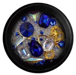 Különböző méretű és formájú strassz kövek és gyöngyök keveréke.