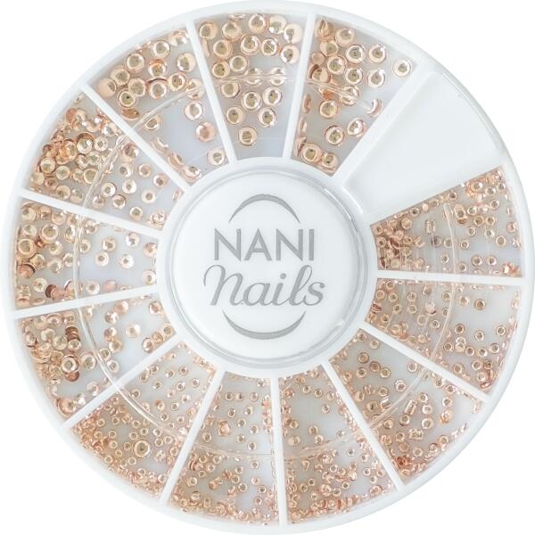 Díszítsd manikűrödet egyedi NANI körömdíszekkel – különböző minták többféle méretben és színben. elegáns kerek körömdísztartóban UV zselés és porcelán alapra is használható rose-gold