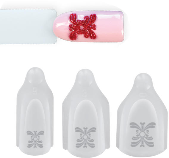 Termék részletekA Silicone Art Design tulajdonképpen egy 3D nyomda, mellyel könnyedén domború díszítést lehet készíteni. Szinte bármely színes anyaggal működik: 3 Step, ONE STEP CrystaLac, Royal Gel, Royal Cream, 3D zselé, Színes zselék és Xtreme Fusion AcrylGel is használható hozzá. Töltsd ki a színes anyaggal a szilikon nyomdamintát, a felesleget töröld le egy Cleanser Pad-dal. Köttesd