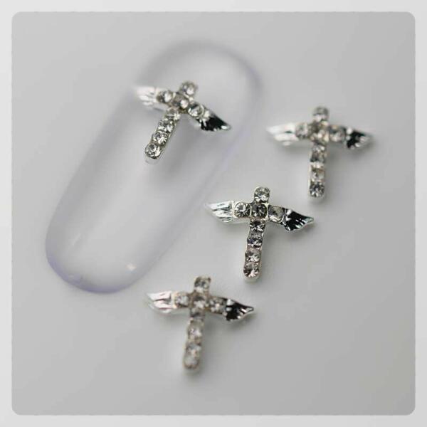 Strasszköves körömdísz, fényes ezüst szárnyas keresztforma, crystal színű strasszkövekkel díszítve. Hajlított formájának köszönhetően könnyen fekszik fel a köröm felületére. Önmagában is különleges díszítő, de kíválóan kombinálható láncainkkal és szórógyöngyeinkkel.