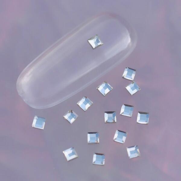 Strassz formakő 2mm-es mini négyzet crystal színben. Flatback, no hotfix típusú ragasztható strassz forma. Népszerű díszítő elem mindazoknak akik az oválios formavilágtól változatosabbra vágynak.