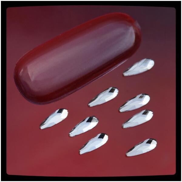 Csepp alakú formakő, üveg, népszerű körömdísz crystal színben. Lapos aljú, fóliázott ragasztható forma. Glue gél alkalmazásával tartósan a körömfelületre rögzíthető. Crystal színe minden díszítéshez kiválóan használható.