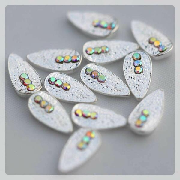 Zodiac körömékszer, hosszúkás, lapos ezüst fémforma színjátszó kövekkel. Alul íves, ezért könnyen fekszik fel a köröm felületére. Glue gél alkalmazása ajánlott rögzítéséhez. Egyedi extrém körömdísz különleges alkalmakhoz.