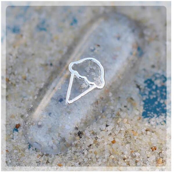 Körömdekoráció ezüst színű fagyi forma. Lapos felületének és kis méretének köszönhetően rásimul a körömfelületre, igazi nyári hangulatot teremtő körömdísz. Nagyszerűen kombinálható ezüst színű szórógyöngyeinkkel, nyári színvilágú strassz formáinkkal, színjátszó strasszköveinkkel.